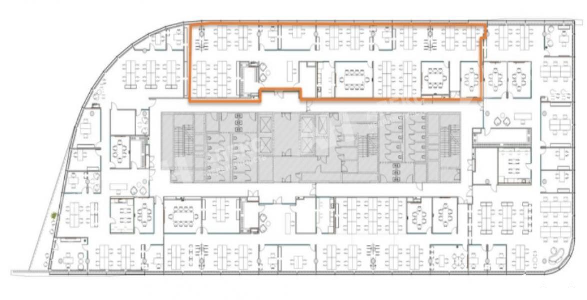 Помещение имеет смешанную планировку, которая включает в себя как отдельные кабинеты, так и пространства формата open space. Инфраструктура офиса включает: 3 кабинета, зоны open space, кухонную зону, зону ресепшн, санузлы и 3 переговорные комнаты. 95 рабочих мест оборудовано. Особое внимание уделено оснащению: установлена дизайнерская мебель премиум-класса, а большие панорамные окна обеспечивают обилие естественного света.