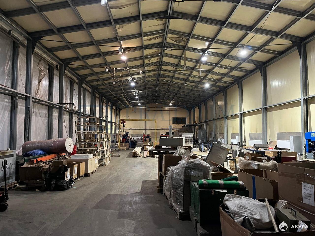 Полы - бетон с антипылью. Высота потолков - 6.5 м.