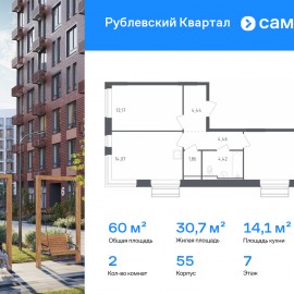 Строим кварталы для жизни с заботой о будущем. Предлагается 2-комнатная квартира комфорт-класса 59, 97 кв.м в корпусе 55 на 7 этаже, в ЖК «Рублевский Квартал» Квартира с чистовой отделкой. Доступность дополнительных опций уточняйте у застройщика. Приобрести квартиру возможно...