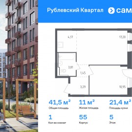 Строим кварталы для жизни с заботой о будущем. Предлагается 1-комнатная квартира комфорт-класса 41, 53 кв.м в корпусе 55 на 5 этаже, в ЖК «Рублевский Квартал» Квартира с чистовой отделкой. Доступность дополнительных опций уточняйте у застройщика. Приобрести квартиру возможно...