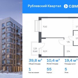 Строим кварталы для жизни с заботой о будущем. Предлагается 1-комнатная квартира комфорт-класса 39, 77 кв.м в корпусе 55 на 5 этаже, в ЖК «Рублевский Квартал» Квартира с чистовой отделкой. Доступность дополнительных опций уточняйте у застройщика. Приобрести квартиру возможно...
