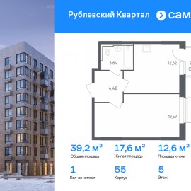 Строим кварталы для жизни с заботой о будущем. Предлагается 1-комнатная квартира комфорт-класса 39, 17 кв.м в корпусе 55 на 5 этаже, в ЖК «Рублевский Квартал» Квартира с чистовой отделкой. Доступность дополнительных опций уточняйте у застройщика. Приобрести квартиру возможно...