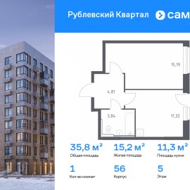 Строим кварталы для жизни с заботой о будущем. Предлагается 1-комнатная квартира комфорт-класса 35, 82 кв.м в корпусе 56 на 5 этаже, в ЖК «Рублевский Квартал» Квартира с чистовой отделкой. Доступность дополнительных опций уточняйте у застройщика. Приобрести квартиру возможно...
