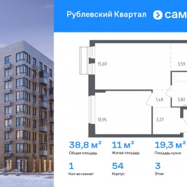 Строим кварталы для жизни с заботой о будущем. Предлагается 1-комнатная квартира комфорт-класса 38, 8 кв.м в корпусе 54 на 3 этаже, в ЖК «Рублевский Квартал» Квартира с чистовой отделкой. Доступность дополнительных опций уточняйте у застройщика. Приобрести квартиру возможно...