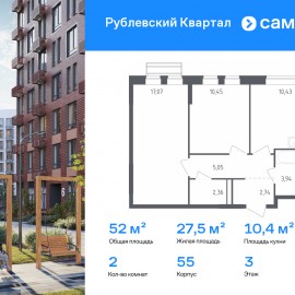 Строим кварталы для жизни с заботой о будущем. Предлагается 2-комнатная квартира комфорт-класса 52, 04 кв.м в корпусе 55 на 3 этаже, в ЖК «Рублевский Квартал» Квартира с чистовой отделкой. Доступность дополнительных опций уточняйте у застройщика. Приобрести квартиру возможно...