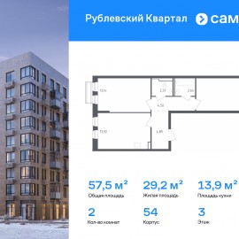 Строим кварталы для жизни с заботой о будущем. Предлагается 2-комнатная квартира комфорт-класса 57, 5 кв.м в корпусе 54 на 3 этаже, в ЖК «Рублевский Квартал» Квартира без отделки. Доступность опции «отделка» и возможность комплектации мебелью и декором уточняйте у...