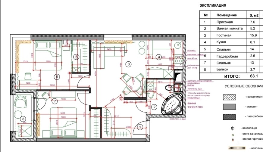 - Площадь кухни