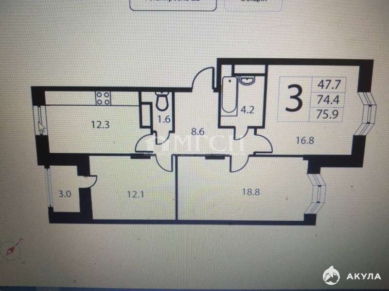 Лот № 74518 Продаётся просторная трёхкомнатная квартира общей площадью 75м2 в современном жилом комплексе «Лайково». Квартира предлагается без внутренней отделки, что позволяет воплотить любые дизайнерские решения и создать пространство мечты!