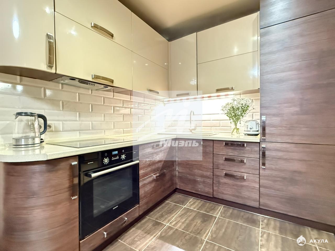 Продается уютная трехкомнатная квартира на 8 этаже 17-этажного дома. Общая площадь квартиры составляет 85 кв.м., из них 25 кв.м. приходятся на кухню. Это модный презентабельный вариант с современным ремонтом, который только что был выполнен. Мебель остается в квартире, так что новым владельцам не придется беспокоиться о покупке новой мебели.