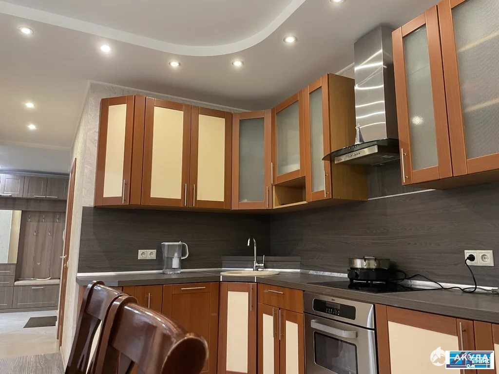 Квартира продается с кухонным гарнитуром и встроенной бытовой техникой.