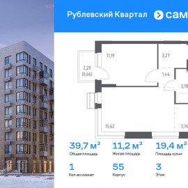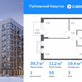 Строим кварталы для жизни с заботой о будущем. Предлагается 1-комнатная квартира комфорт-класса 39, 74 кв.м в корпусе 55 на 3 этаже, в ЖК «Рублевский Квартал» Квартира без отделки. Доступность опции «отделка» и возможность комплектации мебелью и декором уточняйте у...