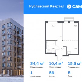 Строим кварталы для жизни с заботой о будущем. Предлагается 1-комнатная квартира комфорт-класса 34, 4 кв.м в корпусе 56 на 5 этаже, в ЖК «Рублевский Квартал» Квартира с предчистовой отделкой. Доступность дополнительных опций уточняйте у застройщика. Приобрести квартиру...