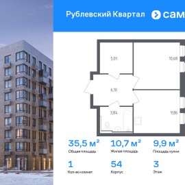Строим кварталы для жизни с заботой о будущем. Предлагается 1-комнатная квартира комфорт-класса 35, 49 кв.м в корпусе 54 на 3 этаже, в ЖК «Рублевский Квартал» Квартира с чистовой отделкой. Доступность дополнительных опций уточняйте у застройщика. Приобрести квартиру возможно...