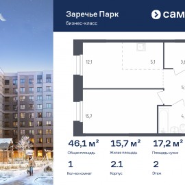 Строим кварталы для жизни с заботой о будущем. Предлагается 1-комнатная квартира бизнес-класса 46, 1 кв.м в корпусе 2.1 на 2 этаже, в ЖК «Заречье Парк» Квартира с чистовой отделкой. Доступность дополнительных опций уточняйте у застройщика. Приобрести квартиру возможно по...