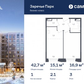 Строим кварталы для жизни с заботой о будущем. Предлагается 1-комнатная квартира бизнес-класса 42, 7 кв.м в корпусе 2.1 на 3 этаже, в ЖК «Заречье Парк» Квартира с чистовой отделкой. Доступность дополнительных опций уточняйте у застройщика. Приобрести квартиру возможно по...