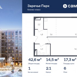 Строим кварталы для жизни с заботой о будущем. Предлагается 1-комнатная квартира бизнес-класса 42, 6 кв.м в корпусе 2.1 на 6 этаже, в ЖК «Заречье Парк» Квартира с чистовой отделкой. Доступность дополнительных опций уточняйте у застройщика. Приобрести квартиру возможно по...