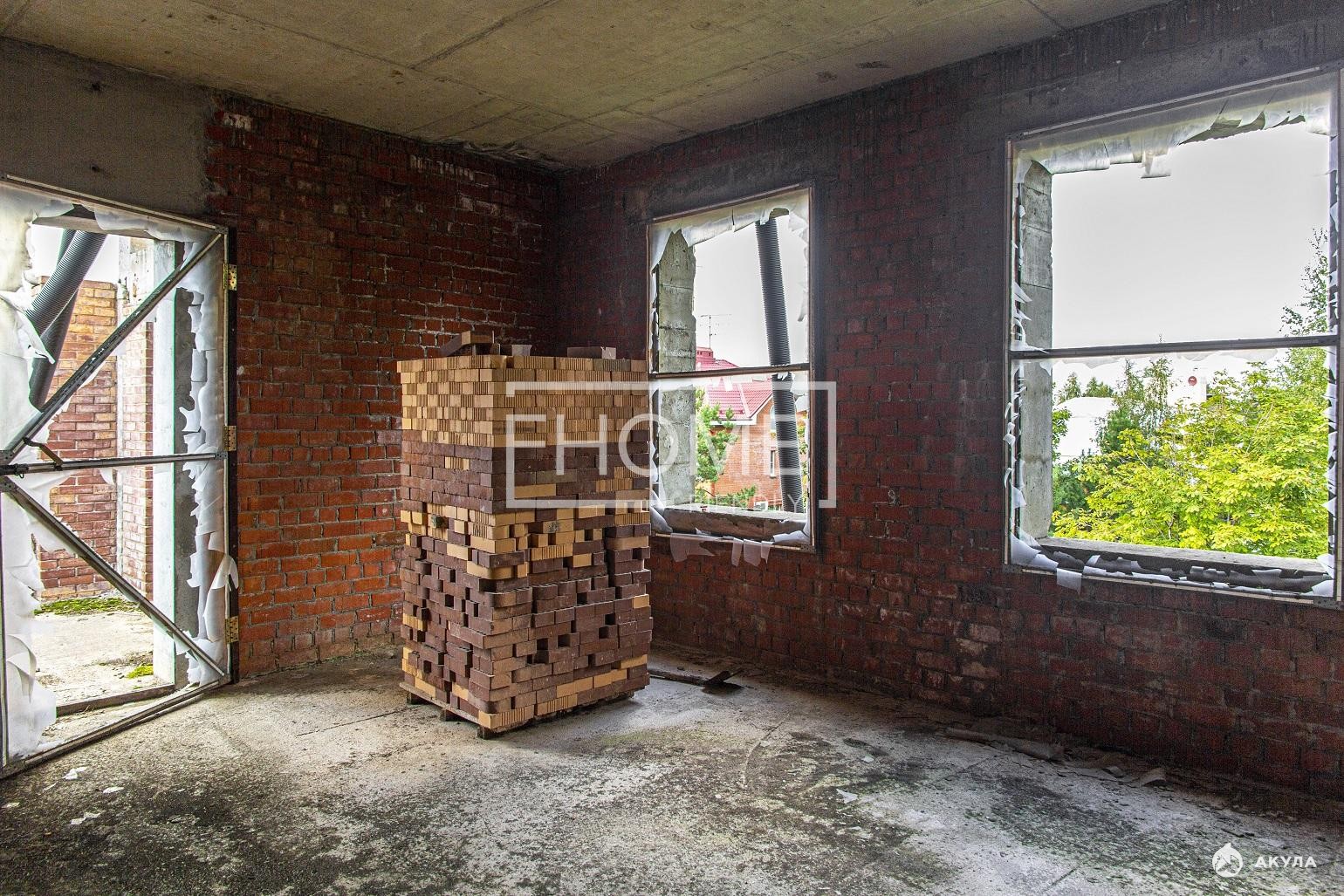 На участке дом в стадии незавершённого строительства под реконструкцию или под снос.