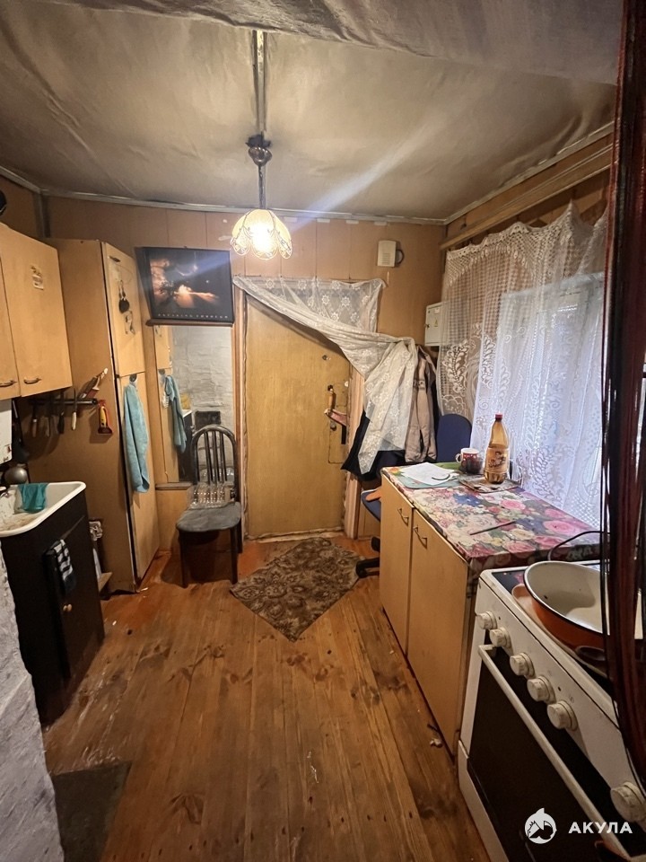 Дом 34 кв.м, 1 этаж: прихожая, кухня 5 кв.м., две комнаты: 12 и 8 кв.м. (смежные). Вся необходимая мебель-есть, техника: плита (электрическая), телевизор, холодильник.