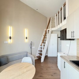 Сдается в аренду уникальная студия, со вторым светом и небольшой спальней на втором уровне. Первый уровень 13. 6 кв. м. , второй 4. 73 кв. м. Студия укомплектована всей необходимой мебелью и техникой, в современном ЖК Sky Skolkovo. Премиальная отделка входных групп, при входе стойка...