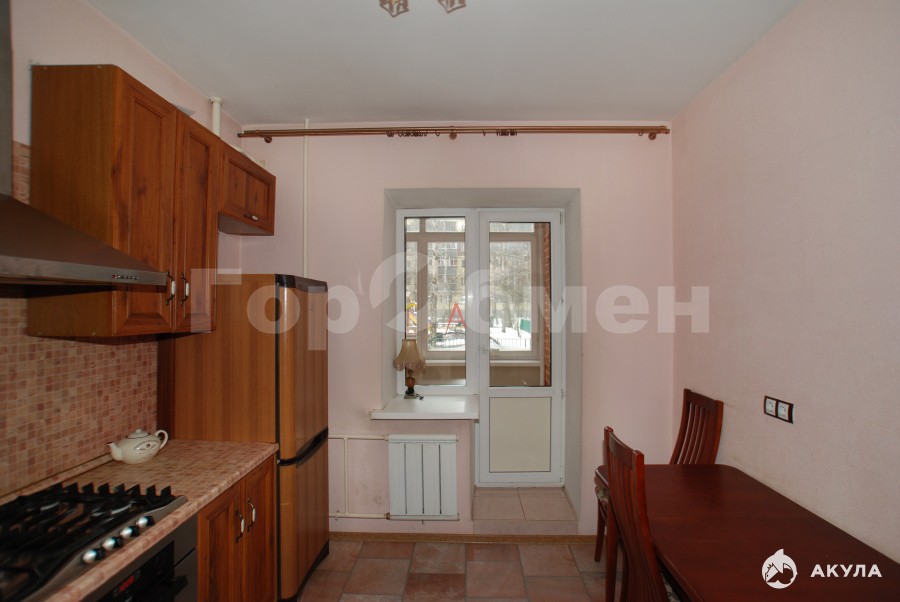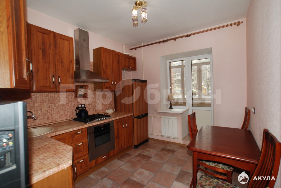 Высокий первый этаж, просторная кухня с выходом на застекленный балкон.